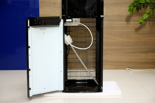 Sản phẩm sở hữu lớp vỏ đen bóng huyền ảo, kết hợp với mặt trước màu trắng bạc sang trọng, tạo nên tổng thể tinh tế và đẳng cấp. Điểm nổi bật của WD5500C là bình nước âm đặt dưới, giúp thay bình dễ dàng, đặc biệt phù hợp với phụ nữ và người lớn tuổi. Ngoài việc tăng tính tiện lợi, thiết kế này còn giúp giảm nguy cơ đổ bình, đặc biệt ở khu vực công cộng hoặc nơi có nhiều người qua lại.