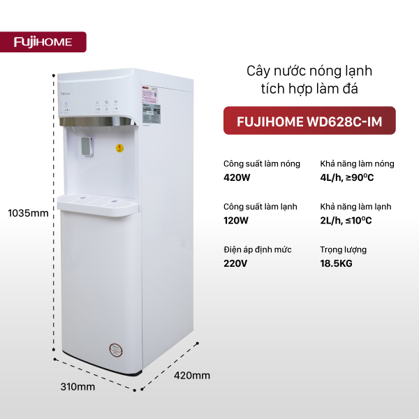 Fujihome WD628C-IM là sản phẩm hoàn hảo cho nhà ở và văn phòng, mang đến nước uống và đá viên tiên lợi mà không lo lắng về hiệu suất hay an toàn. Sở hữu ngay hôm nay để trải nghiệm cuộc sống tiên nghi hơn.