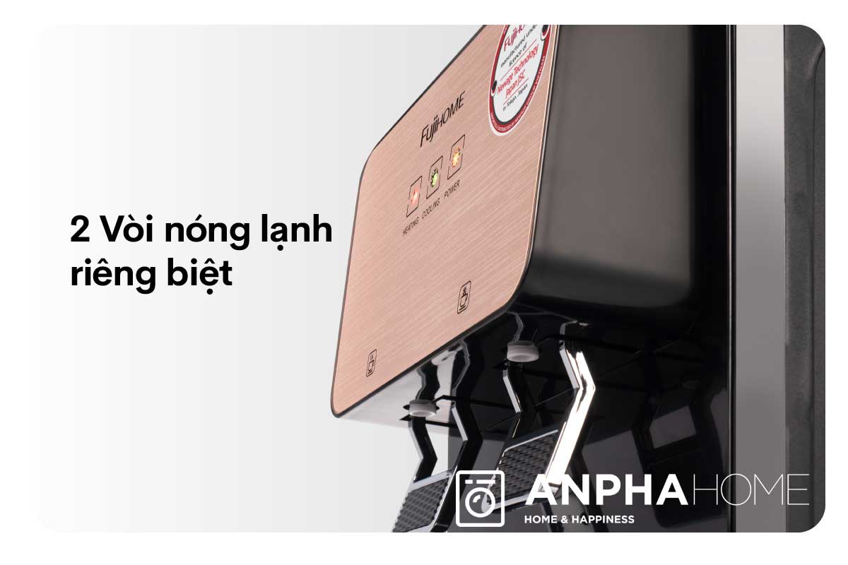 Cây nước nóng lạnh FUJIHOME WD03E có hai vòi nước riêng biệt cho nước nóng và lạnh, giúp người dùng dễ dàng lựa chọn loại nước phù hợp. Nước nóng có thể đạt tới nhiệt độ 85-95°C, lý tưởng để pha trà, cà phê hay mì ăn liền. Trong khi đó, nước lạnh ở mức ≤15°C đủ mát để uống trực tiếp, mang lại sự tiện lợi cho những ngày hè oi bức.