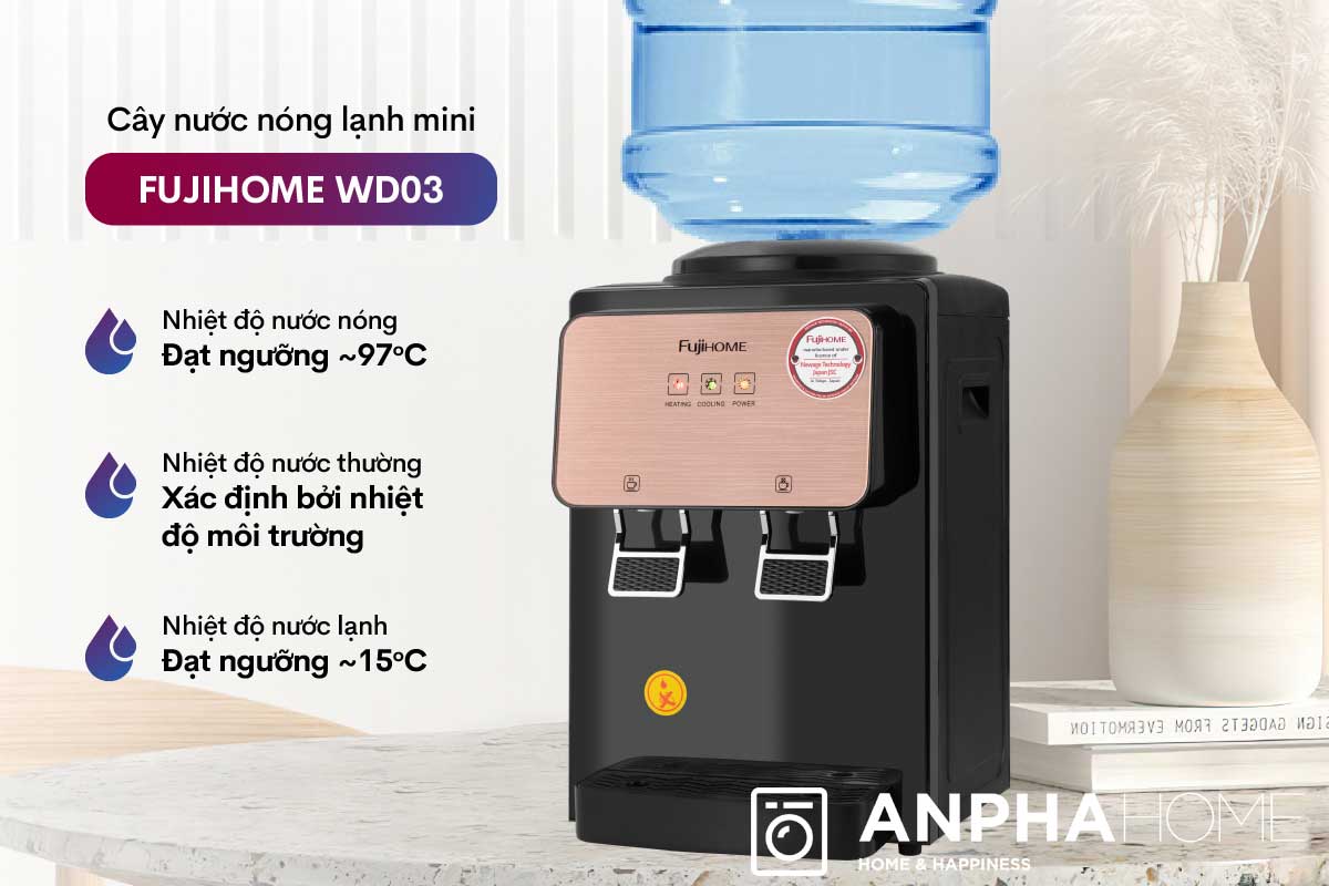 Cây nước nóng lạnh FUJIHOME WD03E để bàn mini là một sản phẩm nổi bật trong dòng thiết bị gia dụng thông minh, được thiết kế nhằm đáp ứng nhu cầu sử dụng nước nóng và lạnh một cách tiện lợi và tiết kiệm không gian. Ra mắt vào năm 2023, WD03E nhanh chóng thu hút sự chú ý nhờ mức giá vô cùng hợp lý nhưng vẫn đảm bảo chất lượng vượt trội đặc trưng của thương hiệu FujiHOME.