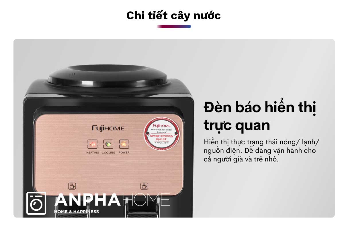 Cây nước nóng lạnh FUJIHOME WD03E được trang bị công nghệ làm lạnh bằng chip điện tử, giúp máy có thể làm mát nước xuống nhiệt độ từ 10-20 độ C, thích hợp để sử dụng trong các ngày hè nóng nực. Mặc dù công suất làm lạnh không quá cao, nhưng công nghệ này giúp máy tiết kiệm điện năng đáng kể, phù hợp với những gia đình hoặc văn phòng muốn giảm thiểu chi phí vận hành hàng ngày.