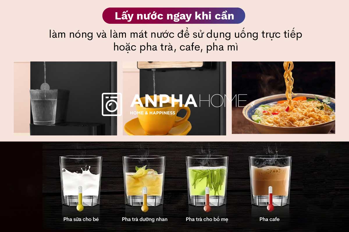 Máy hoạt động ổn định với công suất làm nóng 500W và làm lạnh 65W, đảm bảo đáp ứng nhu cầu sử dụng nước liên tục mà vẫn tiết kiệm điện năng. Thiết kế không có khoang chứa dưới giúp tiết kiệm diện tích tối đa, rất phù hợp để đặt trên bàn làm việc, bàn bếp hoặc các không gian nhỏ hẹp.