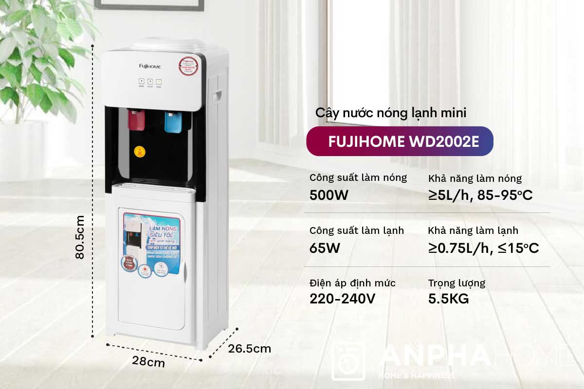 Cây nước nóng lạnh FUJIHOME WD2002E là một trong những sản phẩm mới nhất của thương hiệu FujiHOME, ra mắt vào năm 2023, mang đến giải pháp tối ưu cho nhu cầu sử dụng nước nóng và lạnh trong các gia đình, văn phòng nhỏ. Với thiết kế nhỏ gọn, tinh tế và giá thành vô cùng hợp lý, WD2002E nhanh chóng trở thành lựa chọn hàng đầu của nhiều người tiêu dùng.