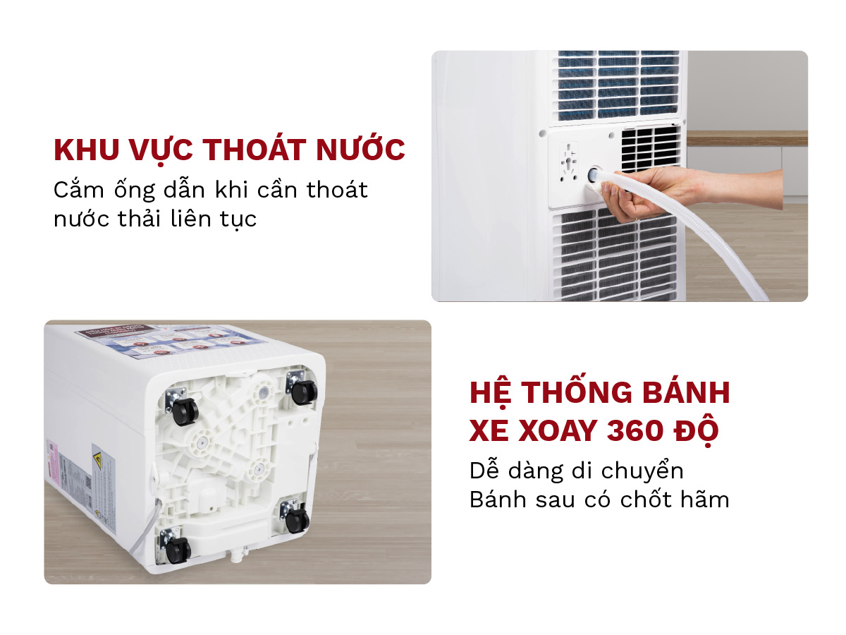 - Cục nóng và cục lạnh trên cùng một thiết bị, không cần lắp đặt.