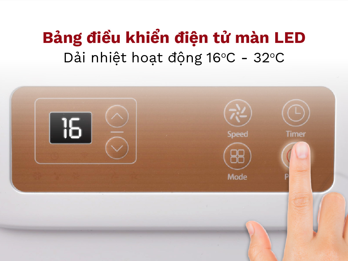 - Tiếng ồn thấp từ 56dB, phù hợp dùng trong phòng ngủ, văn phòng.