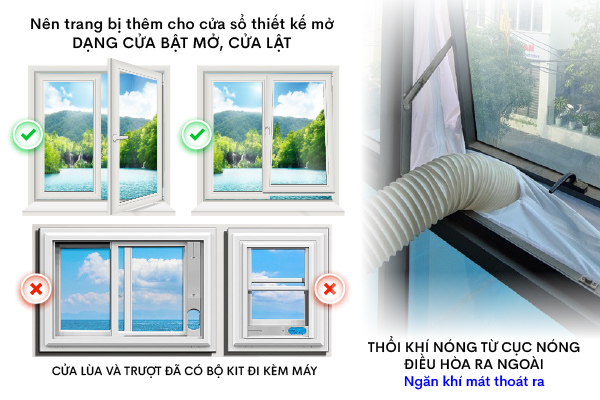 - Cục nóng và cục lạnh trên cùng một thiết bị, lắp đặt dễ dàng.