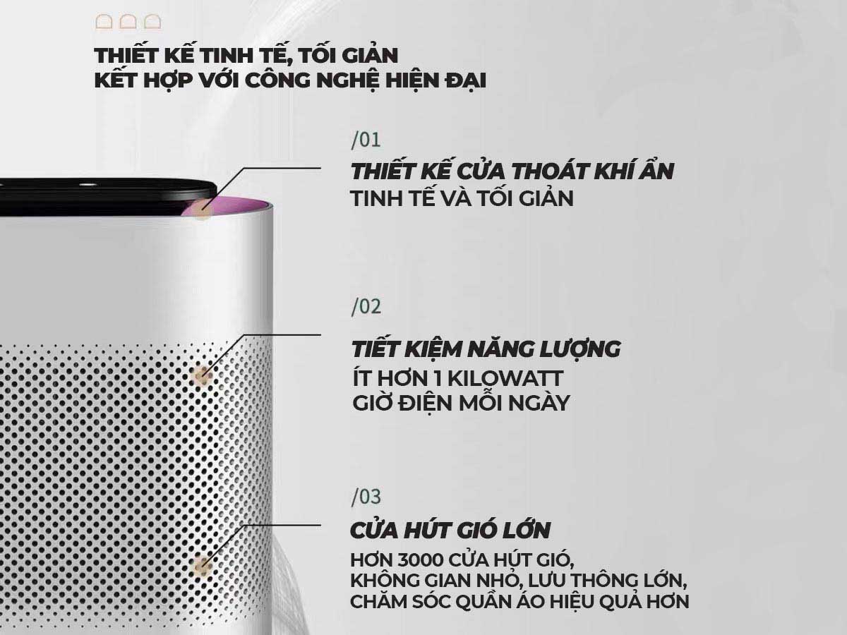 Máy sử dụng công nghệ hút ẩm bằng chip bán dẫn Peltier, không cần sử dụng máy nén khí, giúp giảm tiêu thụ điện năng, đồng thời hoạt động yên tĩnh với độ ồn chỉ 35dB, không gây ảnh hưởng đến giấc ngủ hay sinh hoạt của các thành viên trong gia đình.