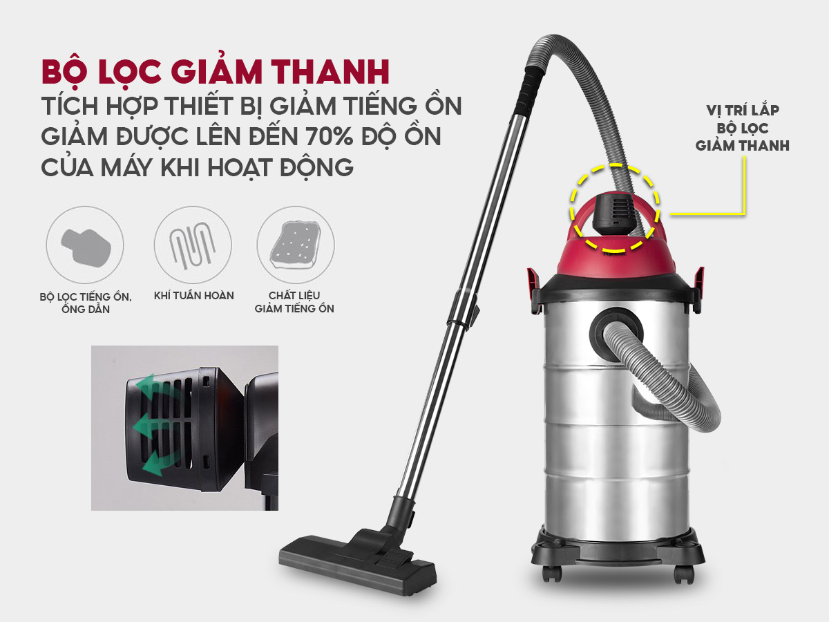Khả năng hút khô và hút ướt hiệu quả: Với dung tích chứa nước lên đến 20L, máy có thể hút nước và bụi bẩn khô một cách dễ dàng và hiệu quả.
