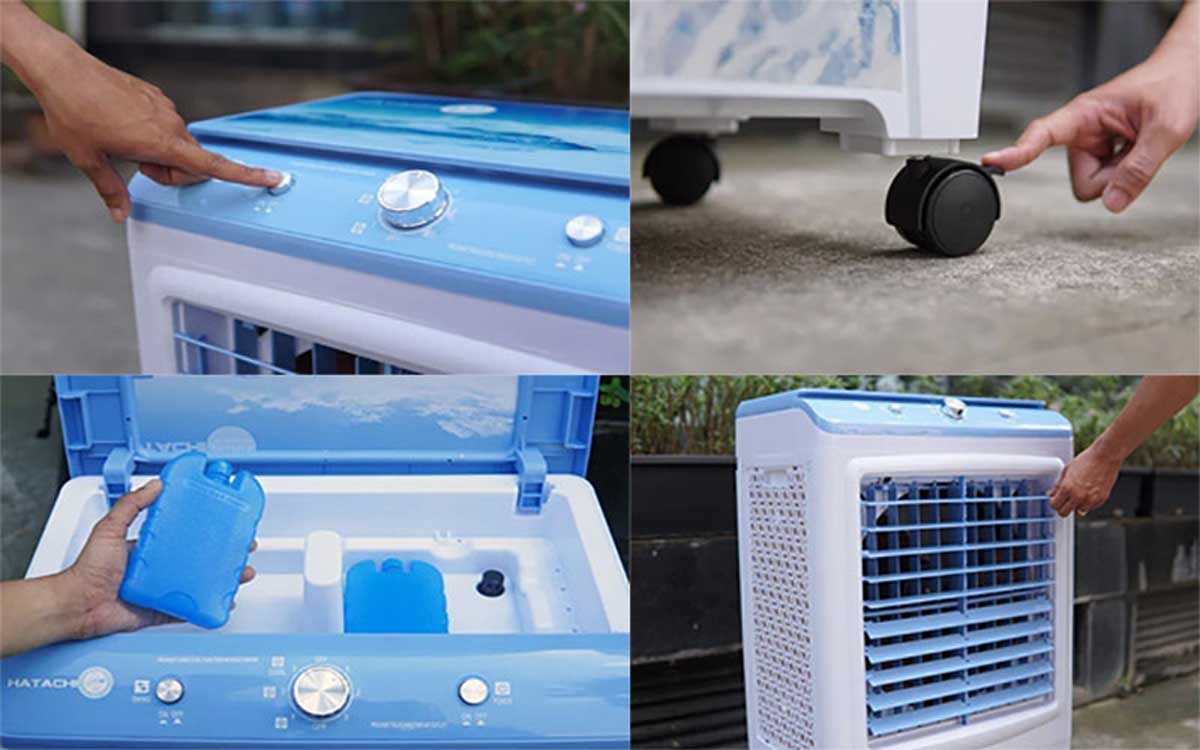 Được thiết kế với 4 bánh xe nhỏ gọn, máy làm mát Hatachi HTC-5000K dễ dàng di chuyển đến bất kỳ vị trí nào trong nhà một cách thuận tiện, từ phòng khách, phòng ngủ cho đến nhà bếp. Bánh xe giúp máy đứng vững trong suốt quá trình hoạt động, ngăn chặn tình trạng rung lắc. Thêm vào đó, bên hông máy còn có cửa tiếp nước được thiết kế thuận tiện, giúp bạn dễ dàng bổ sung nước khi cần mà không phải di chuyển máy.