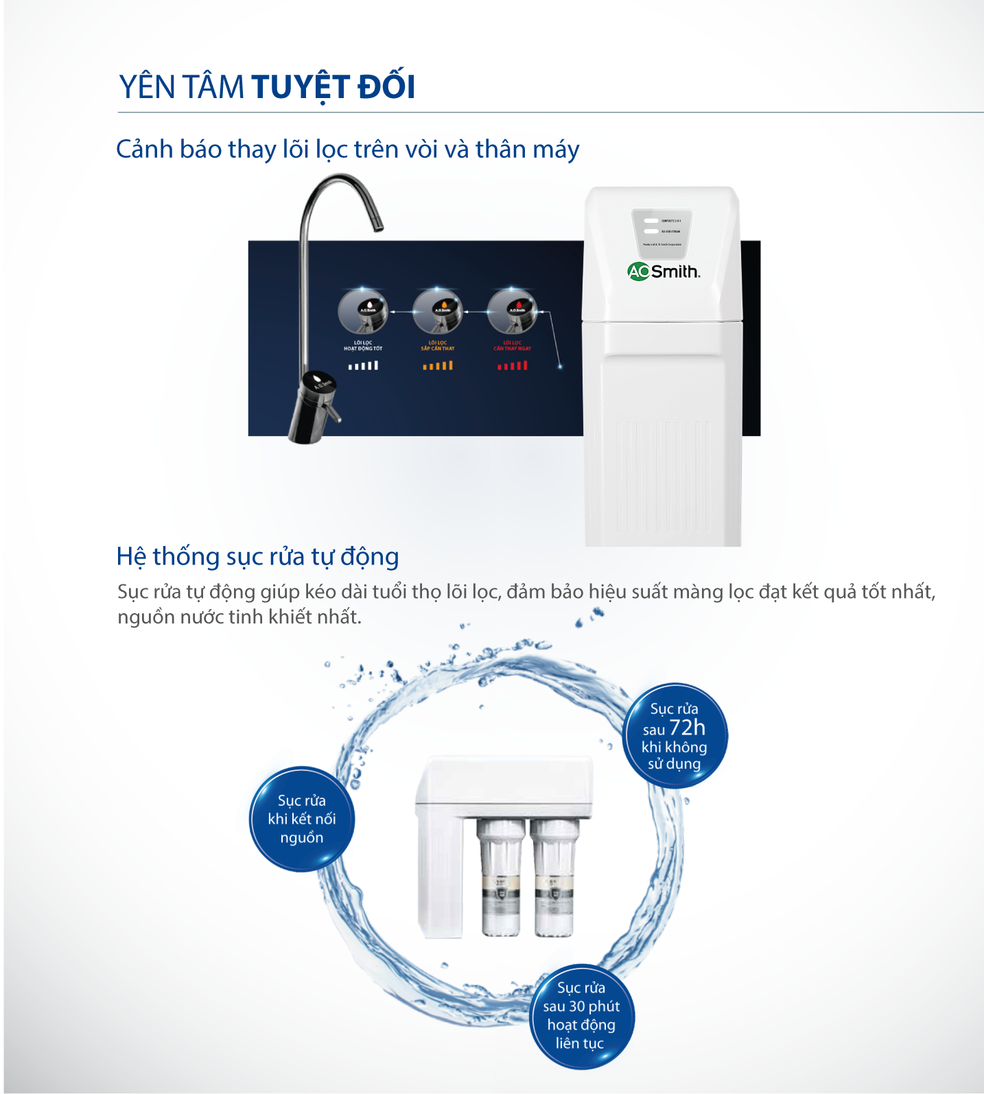 Ngoài ra, máy còn được trang bị công nghệ nhận dạng lõi lọc chính hãng bằng tần số vô tuyến RFID, giúp kiểm soát chất lượng lõi lọc. Khi thay lõi, hệ thống sẽ tự động phát tín hiệu cảnh báo nếu phát hiện lõi lọc giả, đảm bảo 100% lõi lọc chính hãng. Lõi lọc In-line thiết kế an toàn, chống rò rỉ tối đa, giúp việc tháo lắp trở nên dễ dàng, nhanh chóng và thuận tiện hơn cho người sử dụng. Đặc biệt, cảnh báo thay thế lõi lọc được hiển thị ngay trên thân vòi, giúp người dùng dễ dàng theo dõi tình trạng lõi lọc, đảm bảo nguồn nước luôn tinh khiết và an toàn cho gia đình.