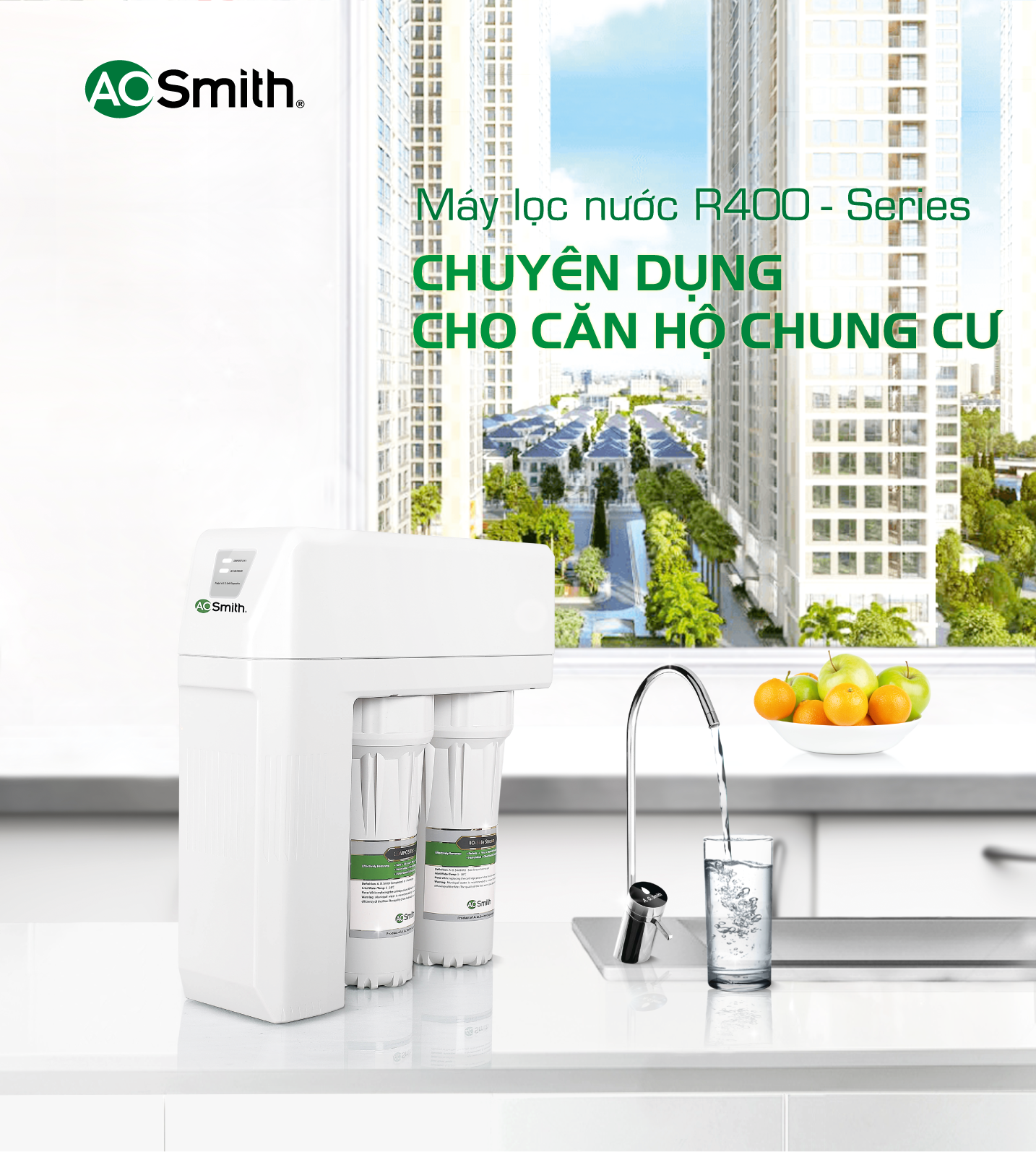 Máy lọc nước A. O. Smith R400E được trang bị lõi lọc tích hợp 5 trong 1 thế hệ mới, giúp loại bỏ kim loại nặng, chất bẩn, vi khuẩn, virus, nấm mốc, đồng thời khử mùi và điều chỉnh vị nước, đảm bảo an toàn cho sức khỏe. Thiết kế không bình chứa giúp sản phẩm siêu mỏng với độ dày chỉ 14cm, phù hợp với mọi không gian bếp, có thể đặt trên bàn bếp hoặc dưới chậu rửa một cách gọn gàng và tiện lợi.