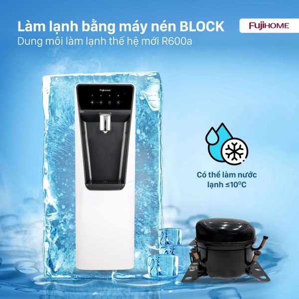 Máy lọc nước Fujihome WP9201C sử dụng máy nén cao cấp với dung môi làm lạnh thế hệ mới R600a, giúp tăng hiệu suất làm lạnh đồng thời tiết kiệm điện năng. Công suất làm lạnh 150W và công suất làm nóng 800W giúp máy vận hành hiệu quả mà không gây hao phí điện năng.