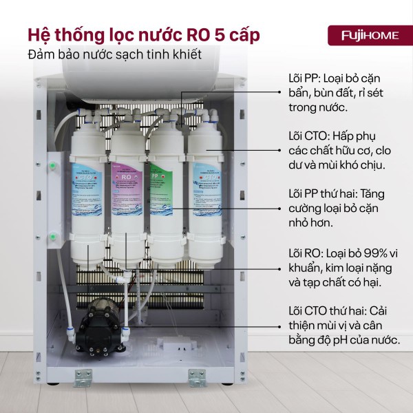 Fujihome WP9201C sử dụng công nghệ lọc nước tiên tiến với 5 cấp lọc, bao gồm: