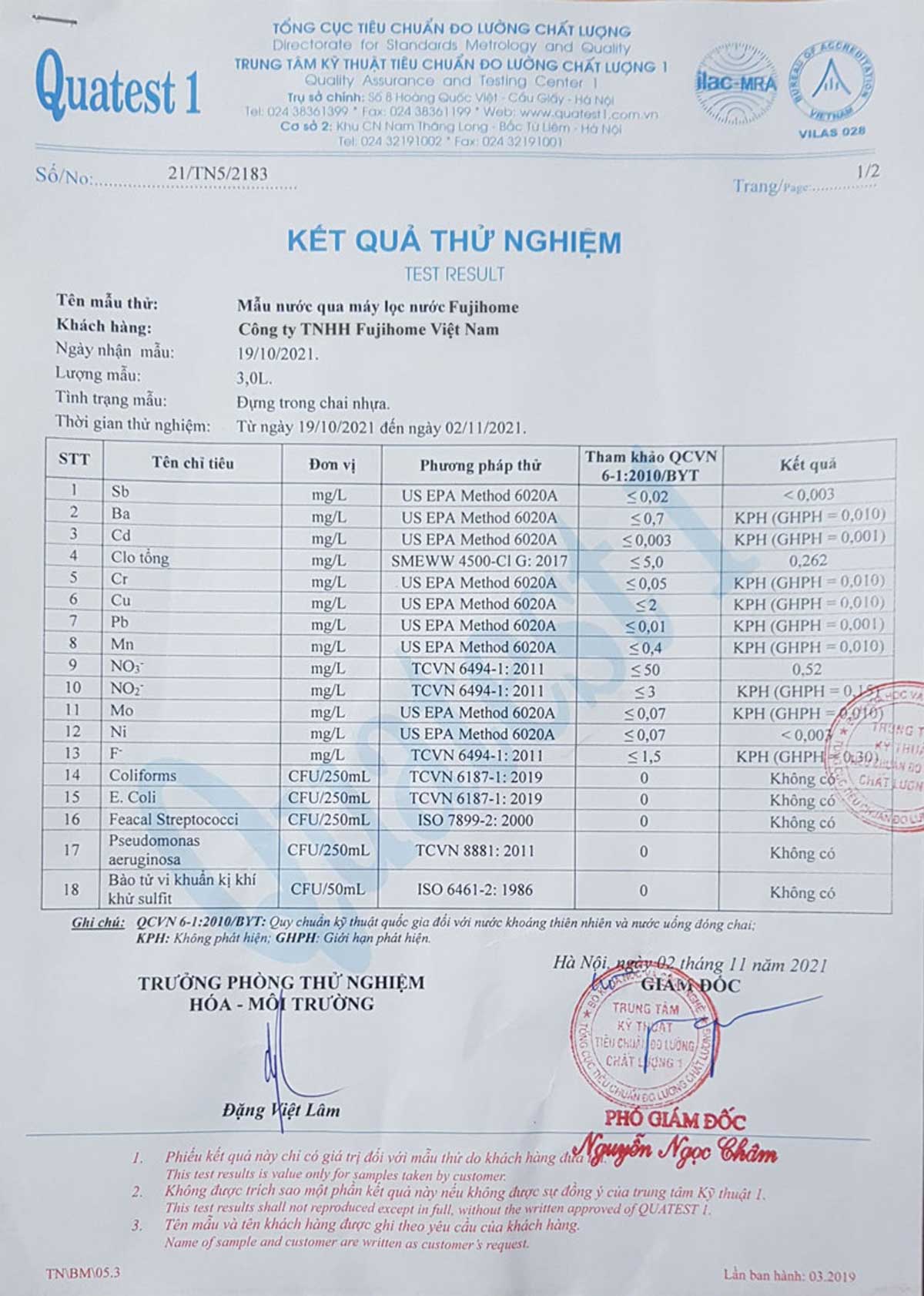 | Lõi lọc | RO Toray Nhật Bản |