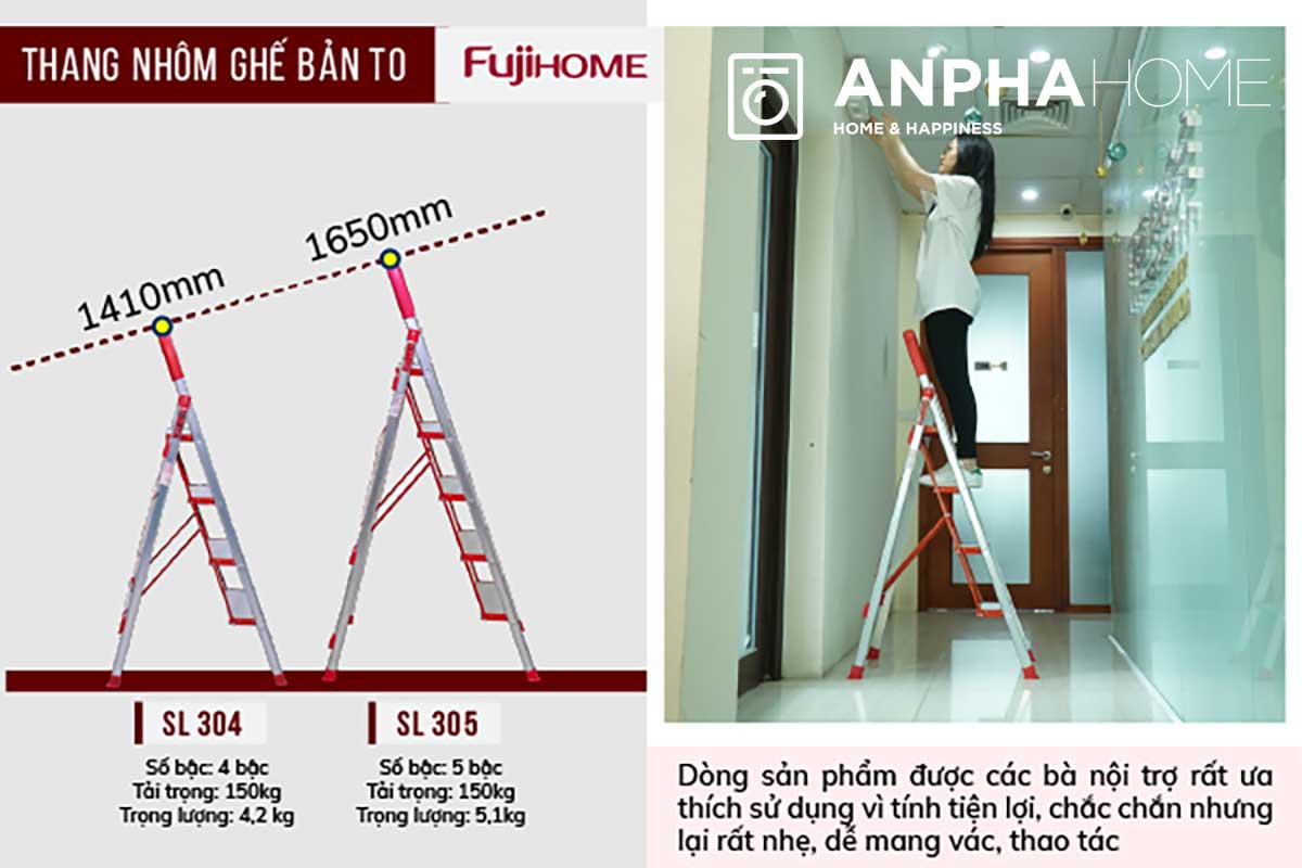Thang nhôm 4 bậc FUJIHOME SL-304 không chỉ mang lại sự tiện lợi, đa năng mà còn đảm bảo an toàn tuyệt đối cho người sử dụng. Với thiết kế thông minh, chất liệu bền bỉ và các tính năng ưu việt, đây chắc chắn là sự lựa chọn hoàn hảo cho mọi gia đình.