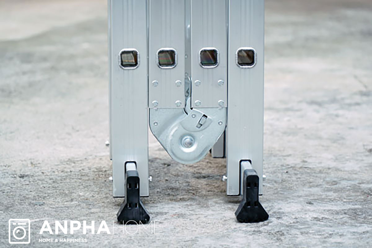 Thang nhôm FUJIHOME gấp đa năng 4 đoạn ML103 được làm từ hợp kim nhôm 6063 cao cấp, có độ dày từ 1.2 – 1.5mm, mang lại độ bền cao và khả năng chịu tải trọng lên đến 150kg. Phần chân đế của thang được bọc cao su lớn với vân sần, tăng cường độ bám và chống trượt, giúp thang an toàn hơn khi sử dụng trên các bề mặt khác nhau. Ngoài ra, các ống nhôm hình chữ nhật được thiết kế đặc biệt để giảm tiếng ồn và rung lắc trong quá trình sử dụng, đảm bảo sự thoải mái và yên tâm cho người dùng.