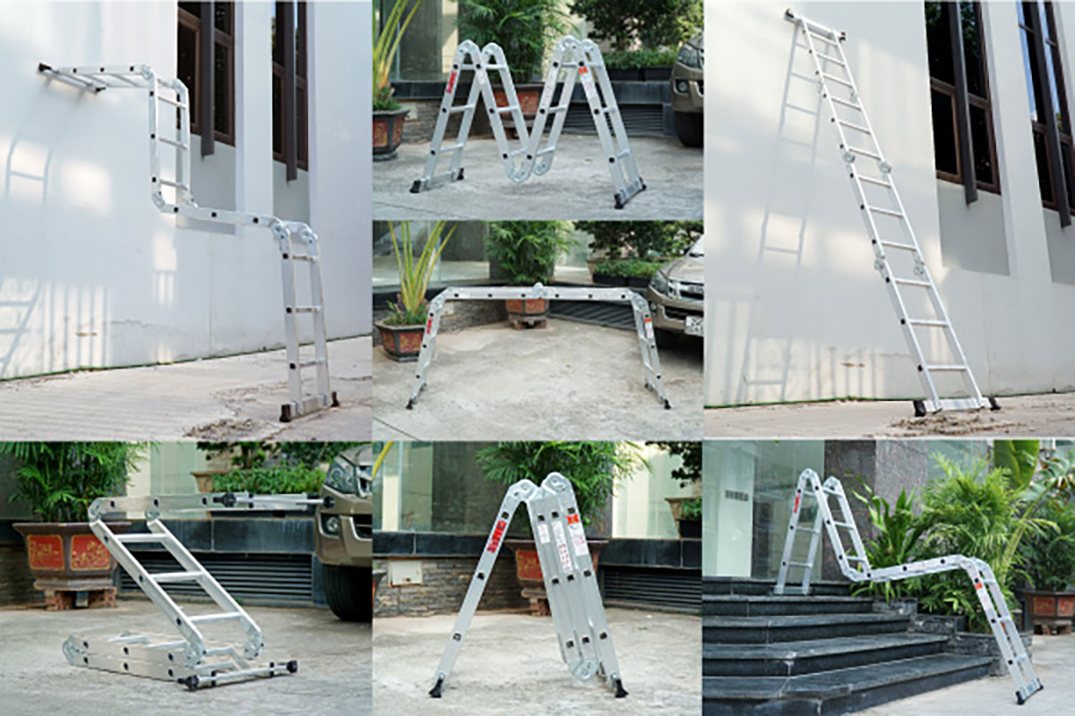Người dùng có thể dễ dàng điều chỉnh chiều cao và tư thế của thang để thích ứng với mọi điều kiện làm việc. Ví dụ, khi cần làm việc ở không gian chật hẹp hoặc không có đủ điểm tựa, bạn có thể dựng thang hình chữ A để tạo độ cân bằng. Trong khi đó, khi có điểm tựa vững chắc, thang có thể duỗi thẳng hình chữ I để đạt được độ cao tối đa.
