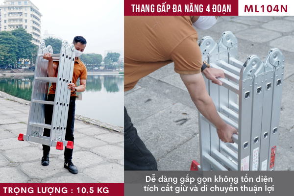 Thang nhôm gấp đa năng 4 đoạn FUJIHOME ML104N là lựa chọn hoàn hảo cho những ai cần một sản phẩm chất lượng cao, đa năng và bền bỉ. Sản phẩm không chỉ đáp ứng tốt các yêu cầu làm việc chuyên nghiệp mà còn là công cụ hữu ích cho các công việc hàng ngày trong gia đình.