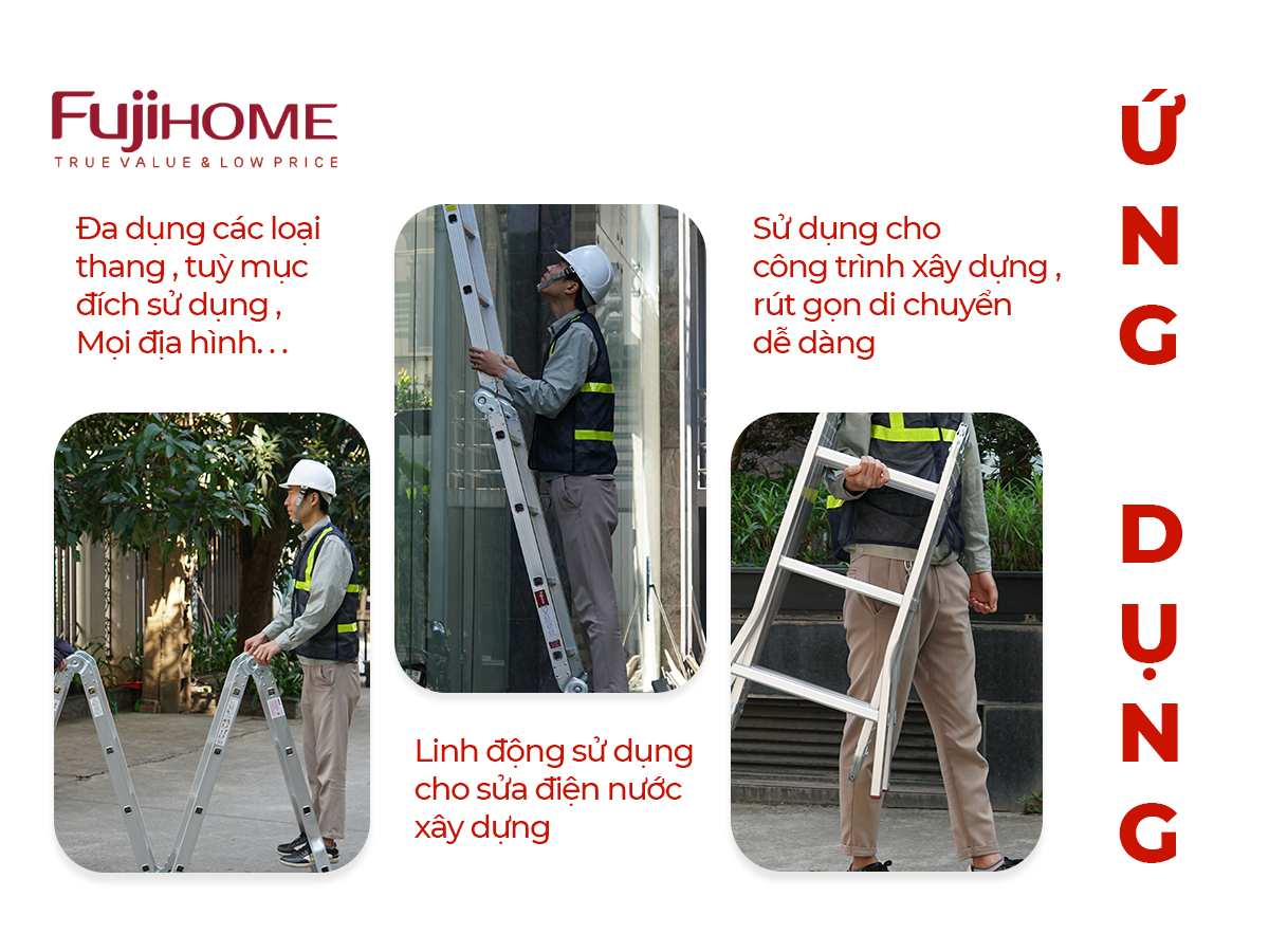 Thang nhôm FUJIHOME ML104S được sử dụng phổ biến trong nhiều ngành nghề và công việc:
