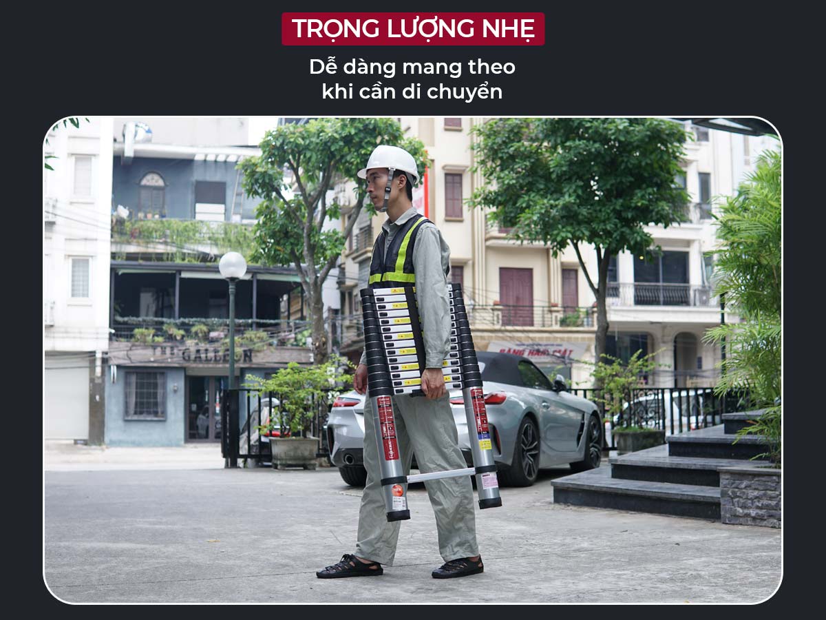 - Thang được làm từ hợp kim nhôm 6063, loại nhôm không gỉ, có độ bền cao và chịu lực tốt. Điều này đảm bảo thang có thể sử dụng lâu dài trong các điều kiện thời tiết khắc nghiệt mà không lo bị oxi hóa hay hư hỏng.
