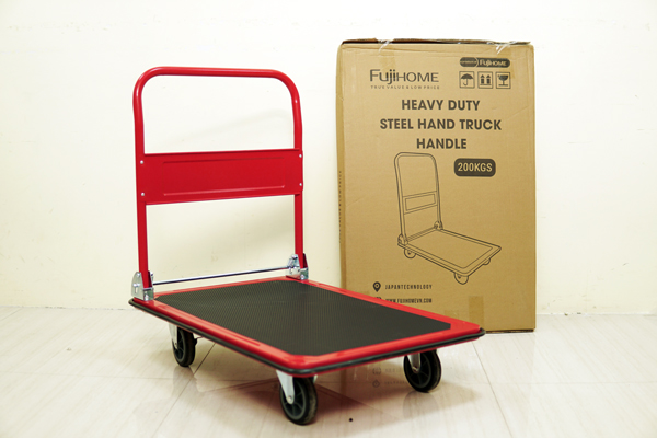 Xe đẩy hàng FUJIHOME HT-430 là dòng xe mới với thiết kế hiện đại, màu sắc đỏ đen nổi bật, mang đến sự bền bỉ và tiện dụng. Với tải trọng lên đến 300kg, sản phẩm này rất phù hợp cho nhu cầu vận chuyển hàng hóa tại kho bãi, siêu thị, cửa hàng hay gia đình.