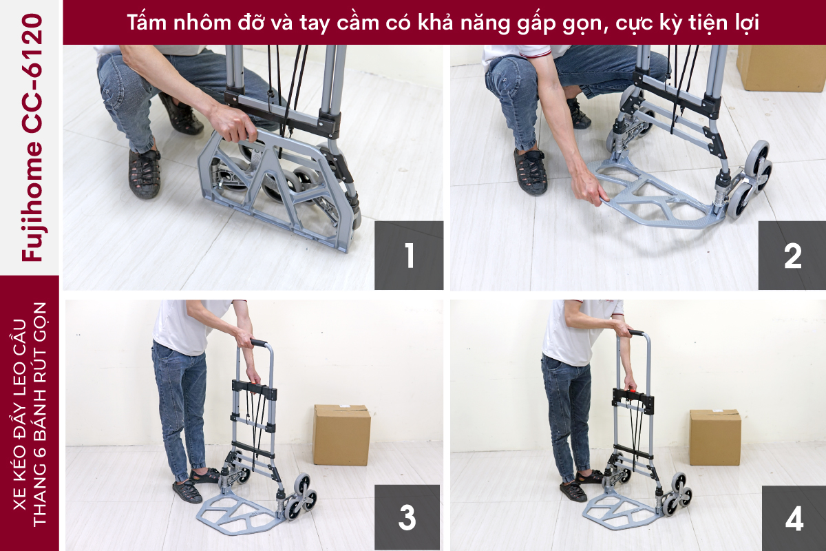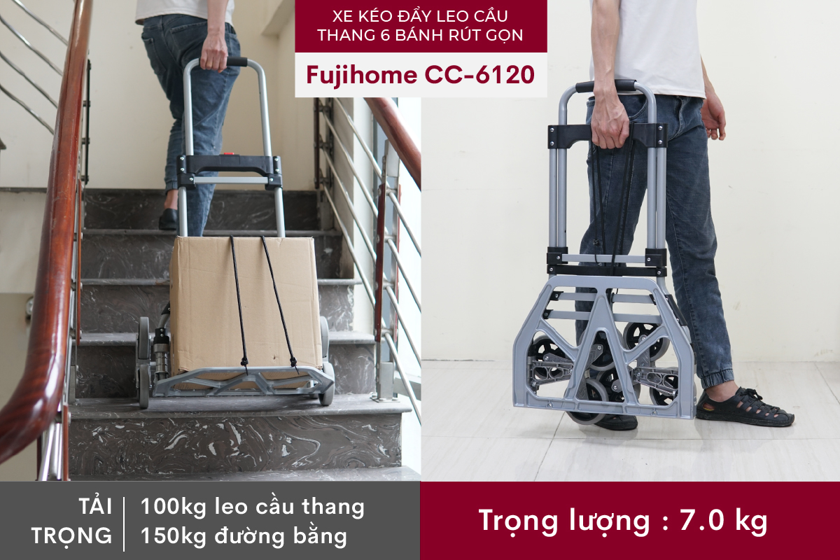 Với xe kéo đẩy leo cầu thang 6 bánh rút gọn FUJIHOME CC-6120, việc vận chuyển hàng hóa trở nên dễ dàng và hiệu quả hơn bao giờ hết.