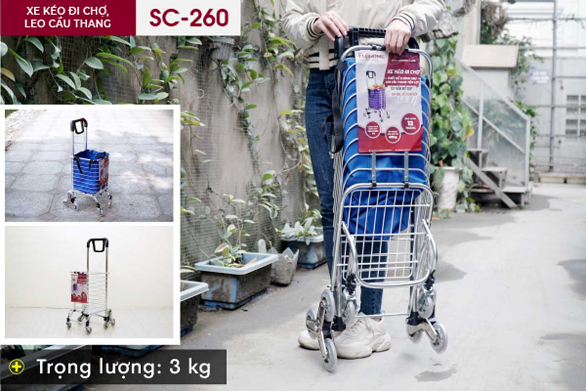 Xe kéo đi chợ leo cầu thang FUJIHOME SC-260 là lựa chọn tuyệt vời cho những ai muốn có một trải nghiệm mua sắm thoải mái và nhẹ nhàng hơn. Với thiết kế thông minh và tính năng vượt trội, sản phẩm này không chỉ giúp bạn chở hàng hóa dễ dàng mà còn có khả năng leo cầu thang một cách dễ dàng, mang đến sự tiện lợi tối đa cho các bà nội trợ.